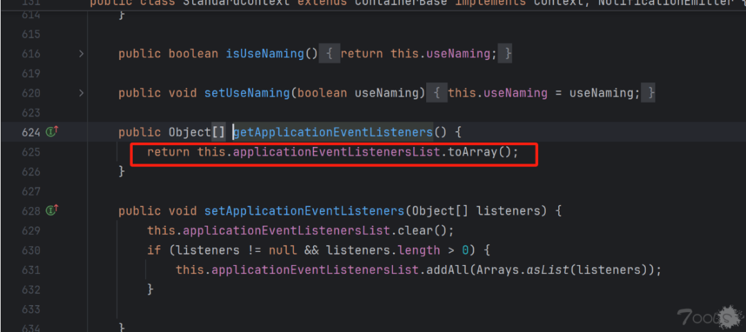 在本类StandardContext里面搜索了一下哪些地方调用或者初始化了这个applicationEventListenersList属性,发现下面两个方法: