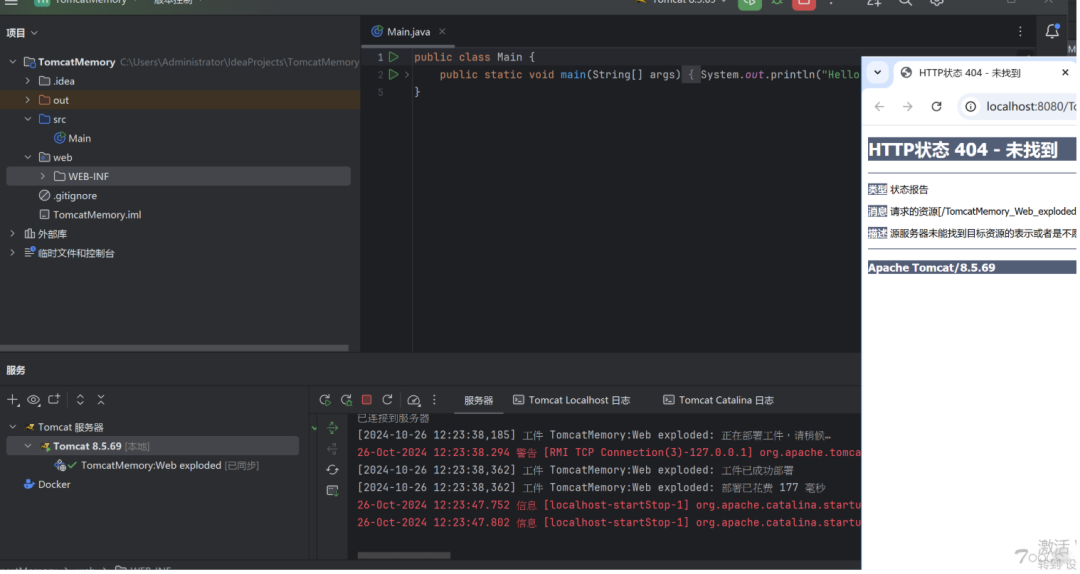 现在项目已经正常运行,这里404是我们没有配置web默认页面,也没有任何业务路由可以访问。