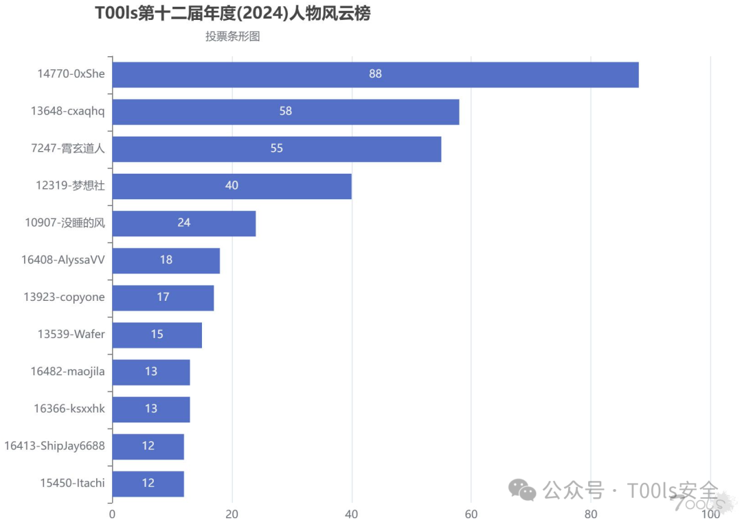 经过激烈的投票海选,排名前12的会员最终进入“2024年度”风云人物,已经荣膺【T00ls名人堂】。