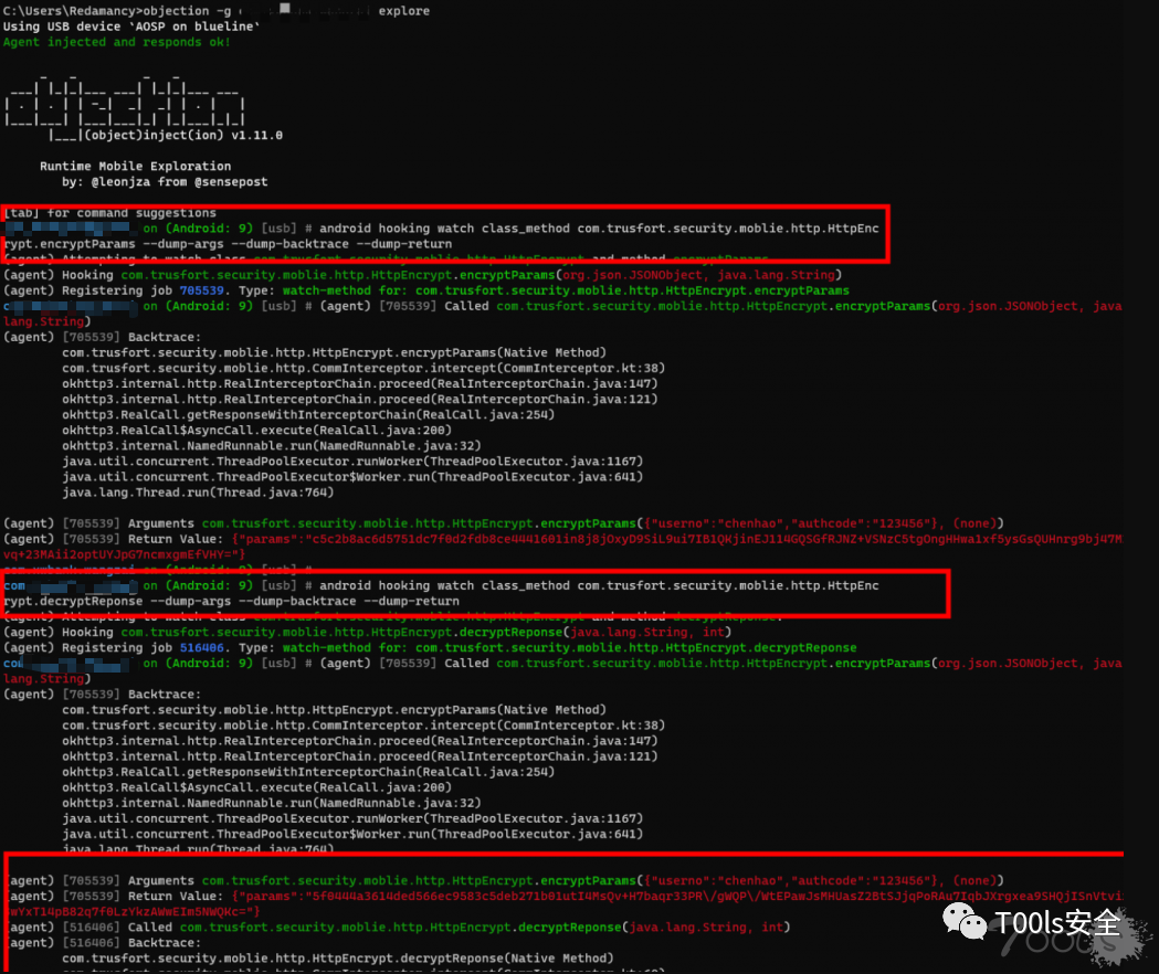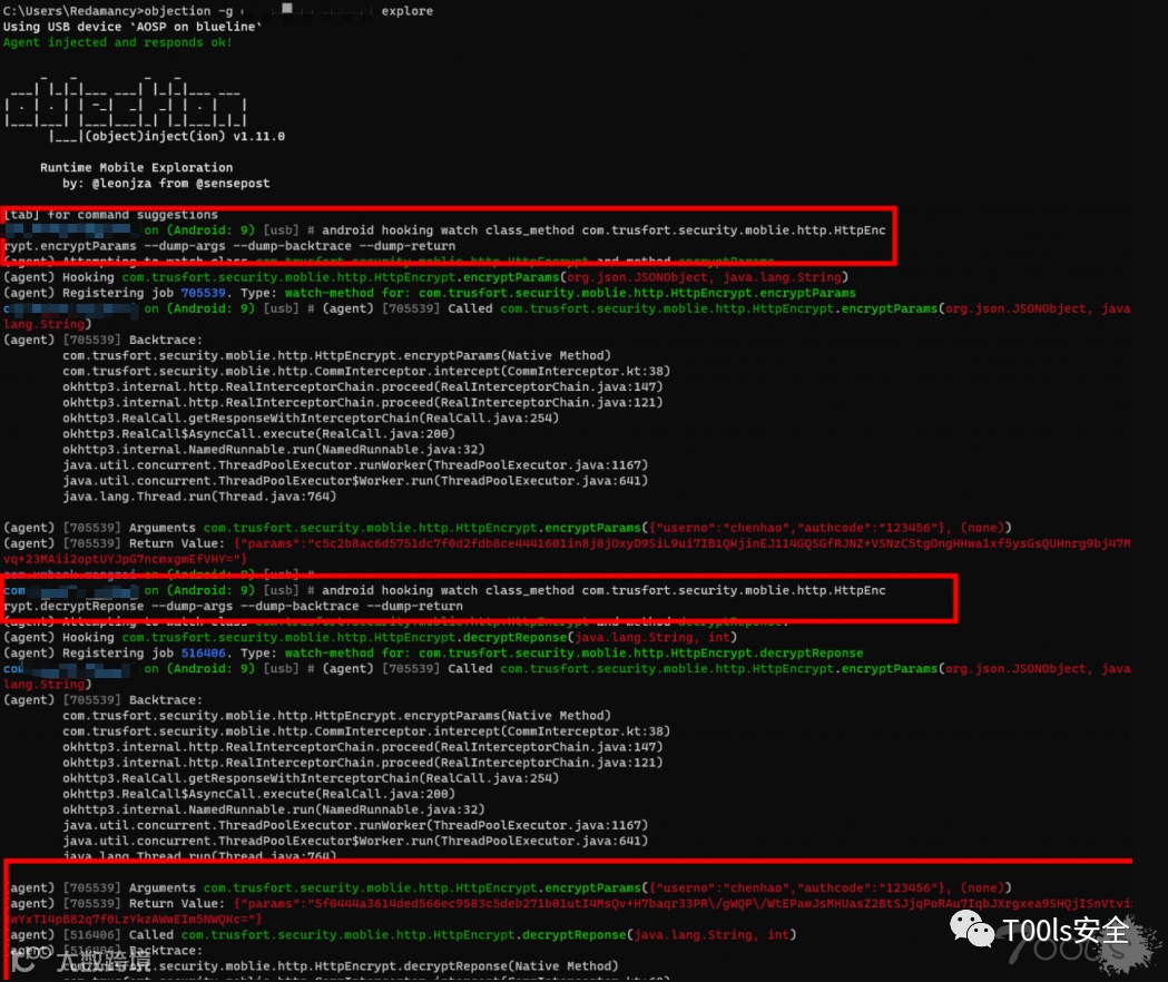 android hooking watch class_methon [方法的完整路径] --dump-args --dump-backtrace --dump-return