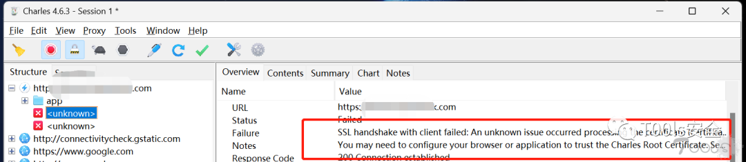 运行命令后,charles也成功抓到包了,而且没有加密,就很nice。