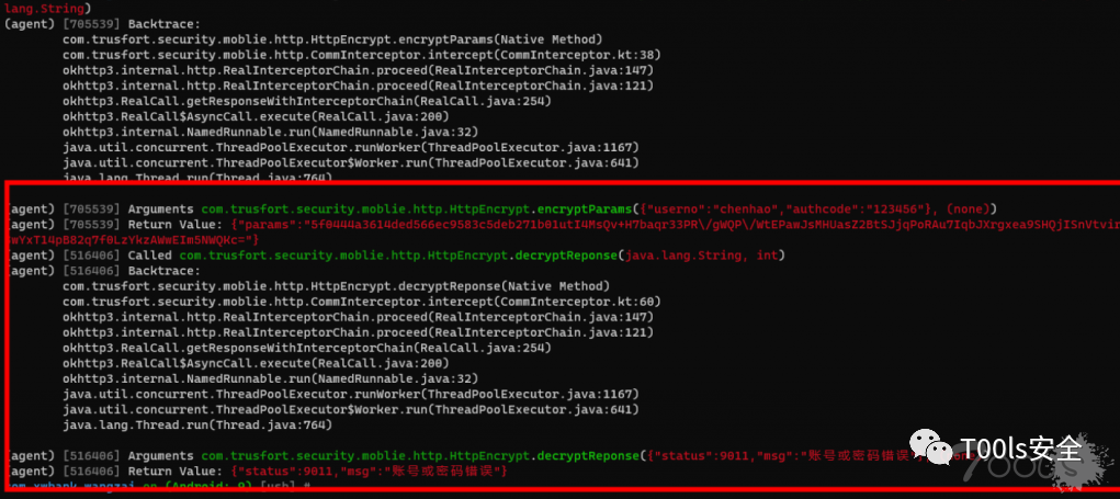 通过hook的结果,可以判断该处代码就是报文的加解密代码。