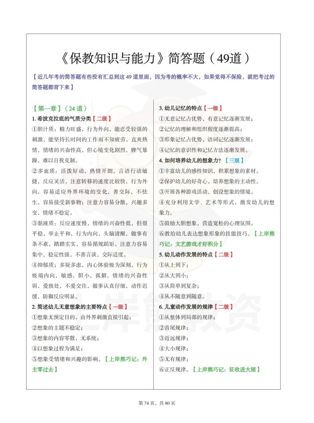 上岸熊幼儿教资科二必背的49道简答题