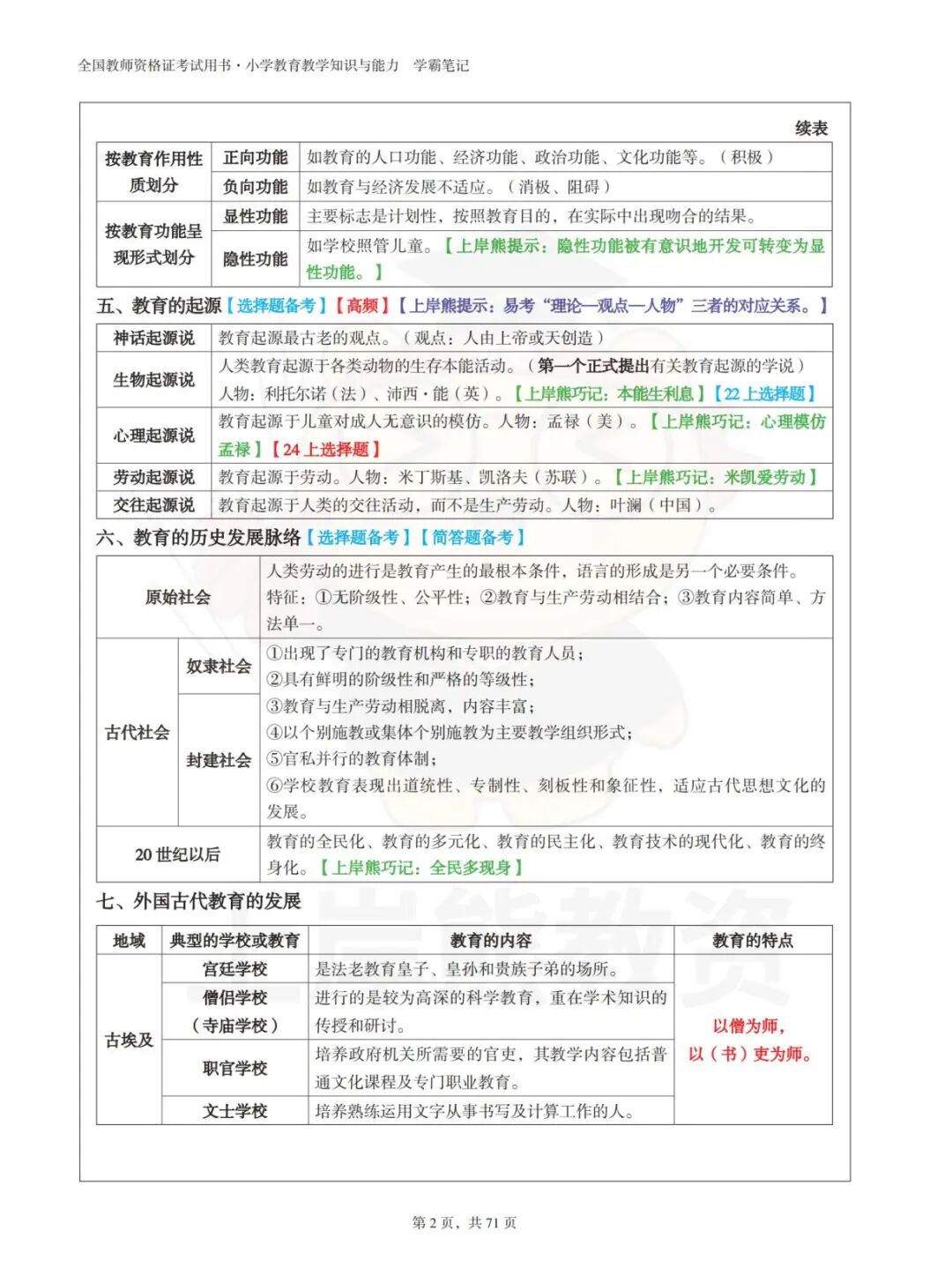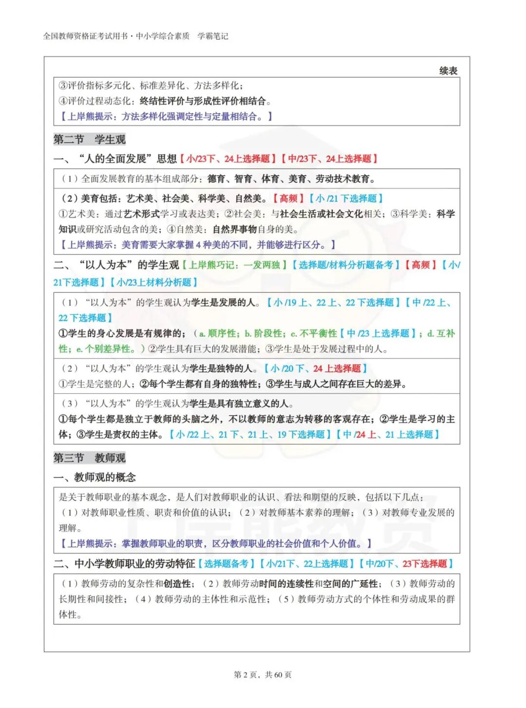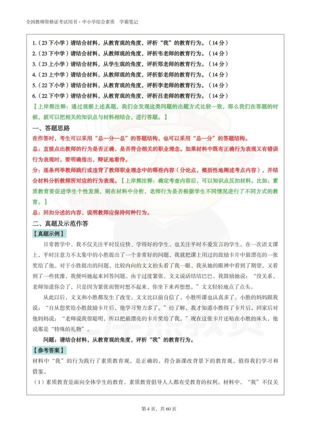 本期文章分享全国教师资格证考试上岸熊学霸笔记中小学综合素质、小学教育教学知识与能力,高清无水印电子版