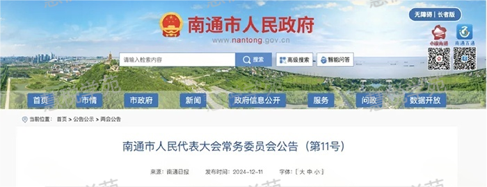 12月10日,南通市十六届人大常委会发布公告,《南通市养老服务条例》将于2025年3月1日起施行。