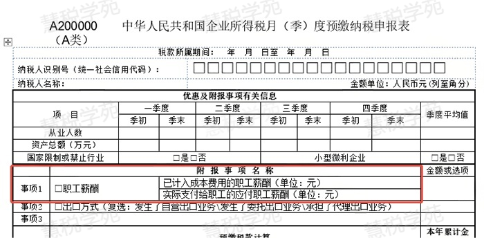 新预缴申报表在“职工薪酬”项下,增设了两个栏次: