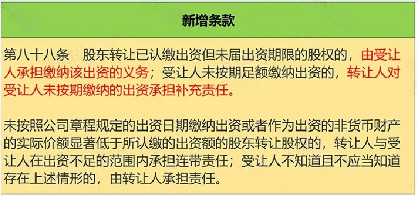 变化四:(新增)股权转让之前未实缴的出资,由受让人负责缴纳