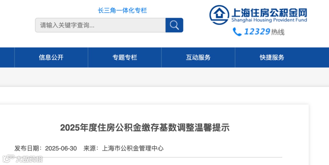 6月30日,上海公积金管理中心发布《2025年度住房公积金缴存基数调整温馨提示》。
