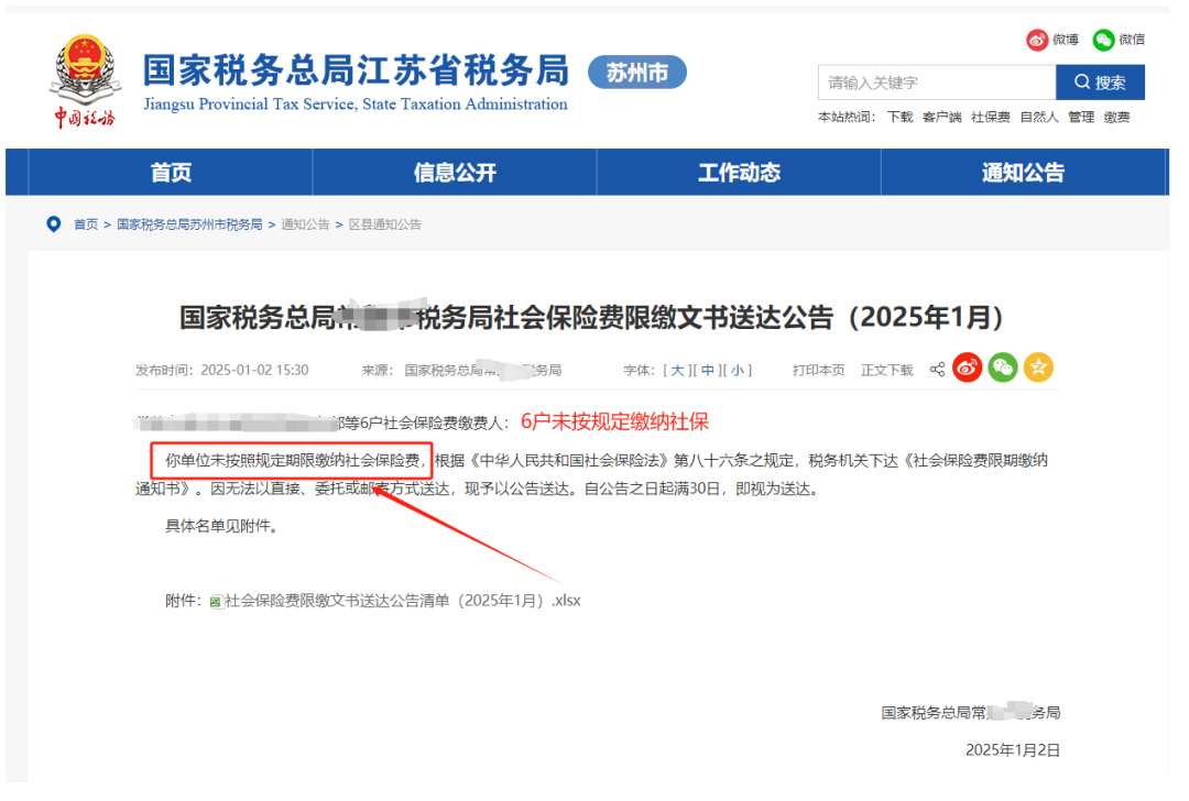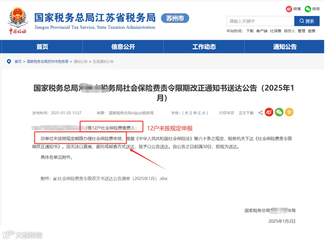 2025年1月,税务局已公告多份企业关于社保费用责令限期改正通知书。