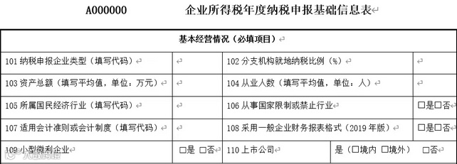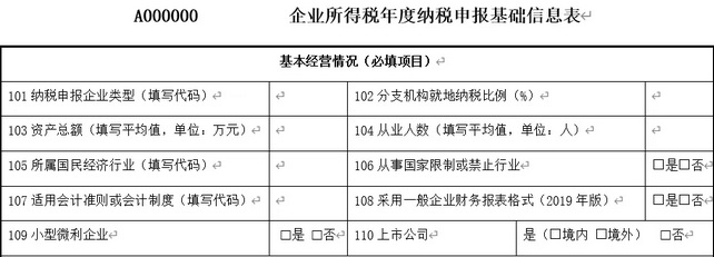 7、《企业所得税年度纳税申报基础信息表》(A000000)中的“基本经营情况”为所有企业必填项目;“有关涉税事项情况”为选填项目,存在或者发生相关事项时的企业必须填报;“主要股东及分红情况”为小型微利企业免填项目,非小型微利企业必须填报。