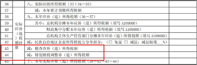 同时,增加“稽查查补(退)所得税额”、“特别纳税调整补(退)所得税额”行次,便利纳税人在稽查查处以及特别纳税调整后更正申报。