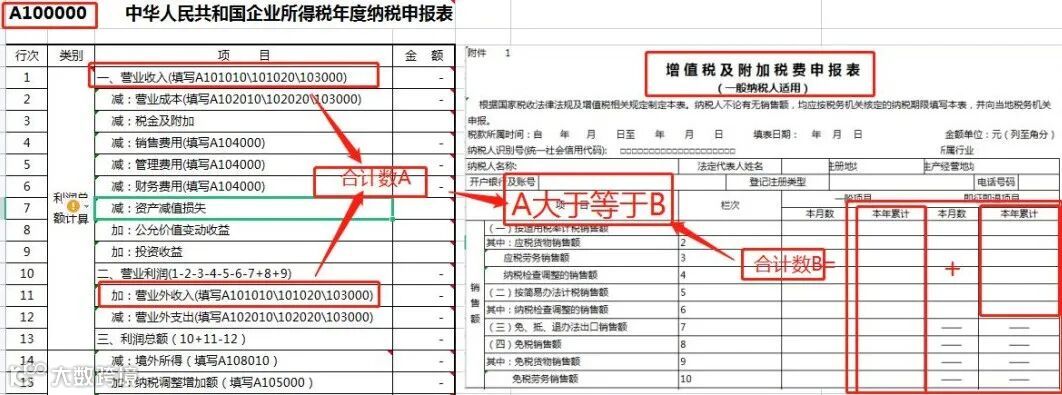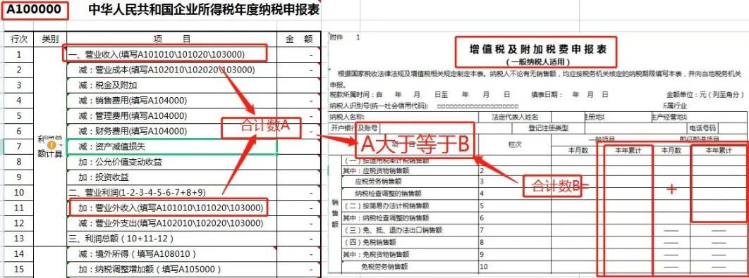 2、企业所得税年度纳税申报表主表(A100000)第13行“利润总额”应与财务报表“利润总额”一致,基础信息表“103资产总额”平均值的计算公式中资产总额期初、期末值应与财务报表“资产总额”期初、期末值一致。