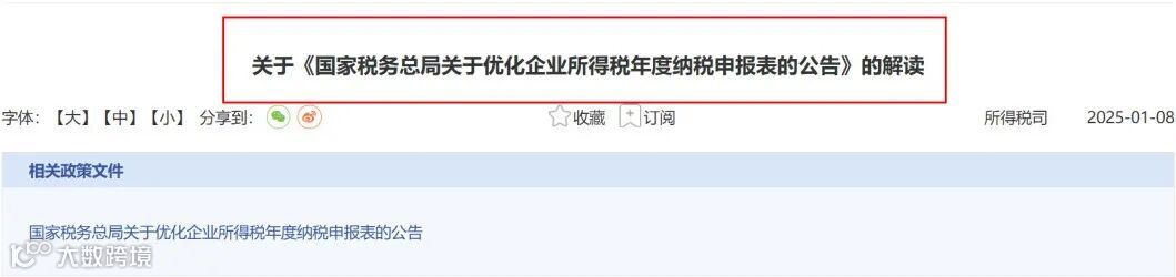 2025年1月,所得税司发布了关于《国家税务总局关于优化企业所得税年度纳税申报表的公告》的解读: