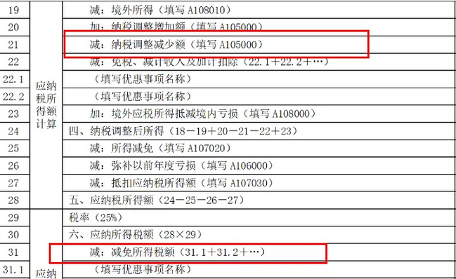 取消《免税、减计收入及加计扣除优惠明细表》(A107010)和《减免所得税优惠明细表》(A107040),将“免税、减计收入及加计扣除”和“减免所得税额”相关优惠事项整合至主表。纳税人可根据《企业所得税申报事项目录》在主表相应行次选择填报。