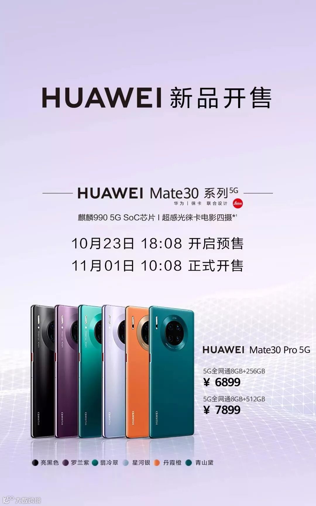 预交500元即可成功预订并享Mate30 5G版全系列享官网价购机!