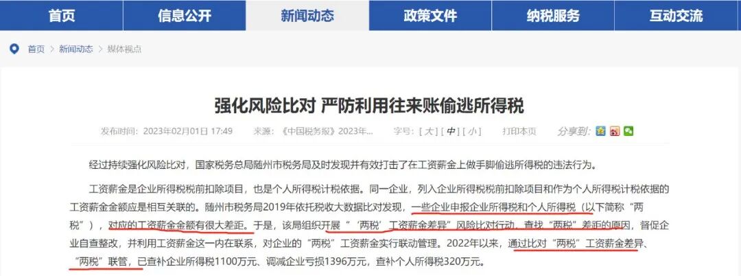 a.员工发放了工资,但未申报个税,或者按照较低的收入申报个税