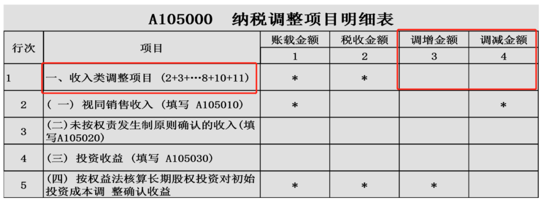 入和其他业务收入)+A105000纳税调整项目明细表第1行纳税调增收入-A105000