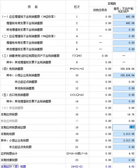 按理说没有任何问题。但是提交申报的时候,减免税明细表始终无法通过比对。系统提示是,减免税明细表本期发生额小于开票的不含税金额的2%。