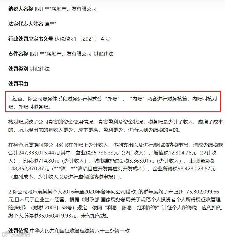 近日,在某税务局网站上看到公司因内外两套账,被税局稽查罚款的处罚案例: