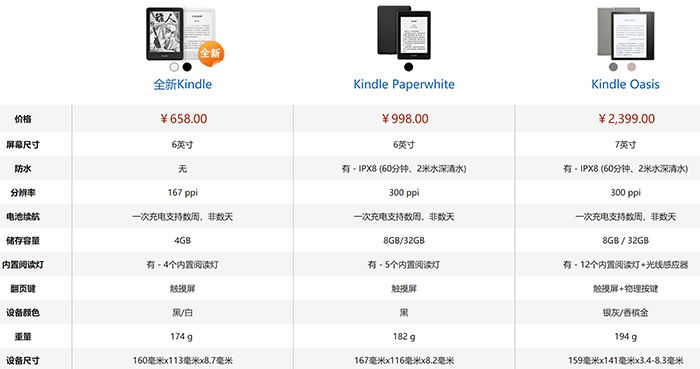 Kindle青春版配置与入门课相似,4GB存储空间、6英寸/167PPI屏幕,但墨水屏技术也升级到Carta 1.2,由于采用的是非纯平屏幕,因此不支持防水功能。
