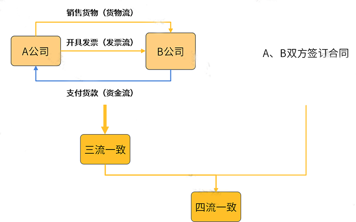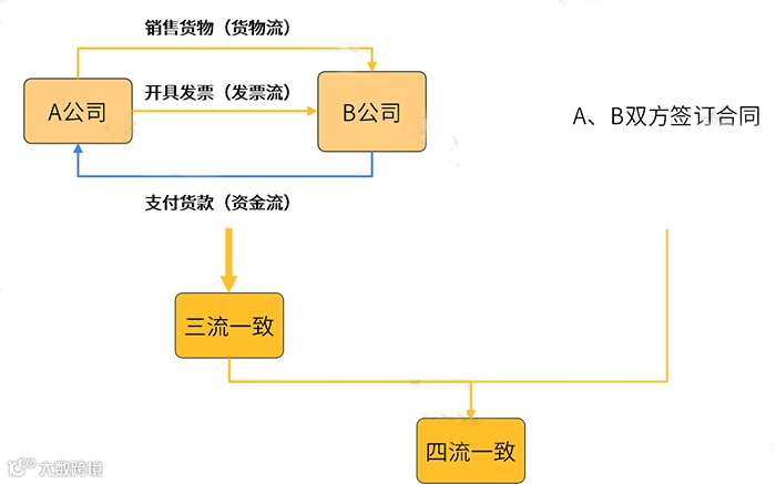 简单来说,“三流一致”指的是发票流、资金流和货物流的统一,如图所示:
