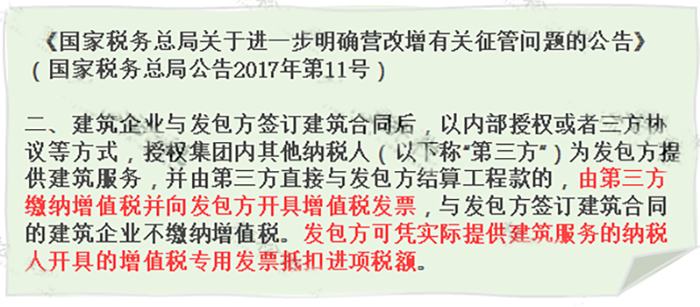 1、发包方:凭实际提供建筑服务的纳税人开具的发票抵扣
