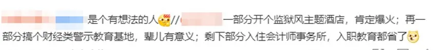 对于提篮桥监狱搬迁,有人建议旧址改成会计学院,还有会计人调侃道“他们师资应该比我们好”。