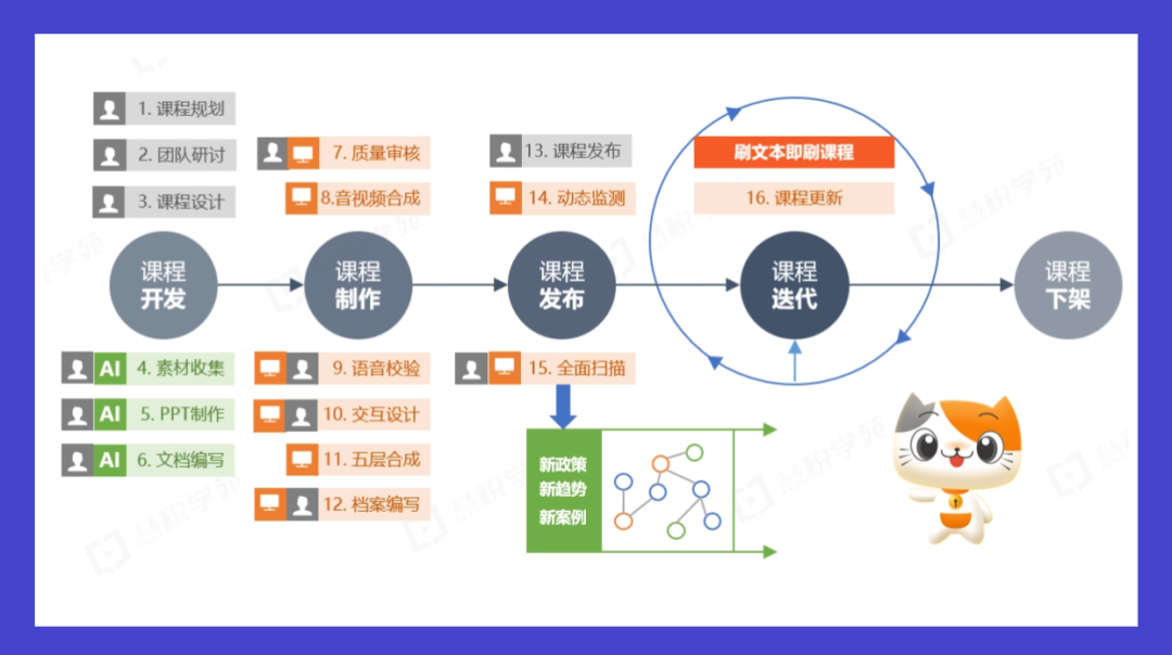 每一节课程内容更是经过16道工序层层打磨,“系统&人工&AIGC协同”3大部分协同操作,确保课程内容输出的便捷性、完整性、精准性。