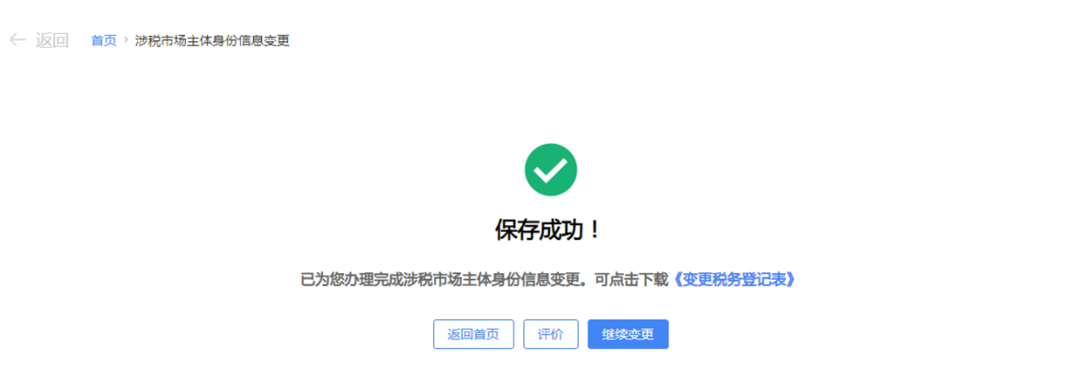 选择变更项目,并将最新信息填写在右侧“变更后内容”中。填写完成后点击“确定”,显示“保存成功”。