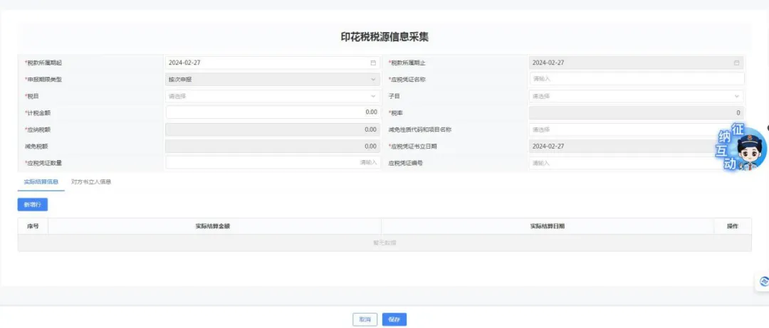点击卡片上的【税源采集】,系统跳转到印花税税源明细表界面。