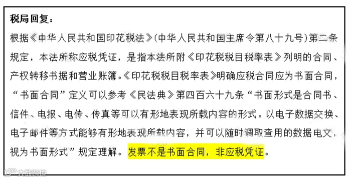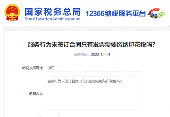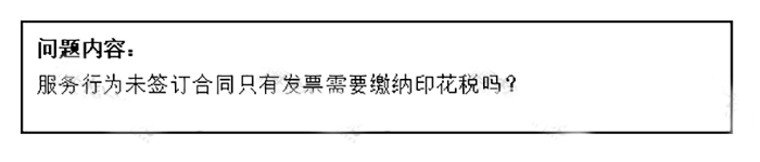 也就是说:服务行为未签订合同,只有发票是不需要缴纳印花税的。
