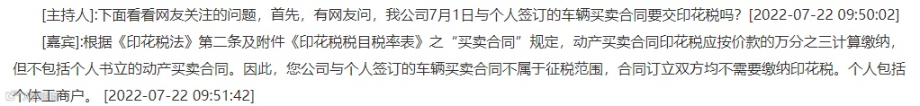 根据《中华人民共和国印花税法》(中华人民共和国主席令第八十九号)《印花税税目税率表》中买卖合同备注中明确动产买卖合同(不包括个人书立的动产买卖合同)。