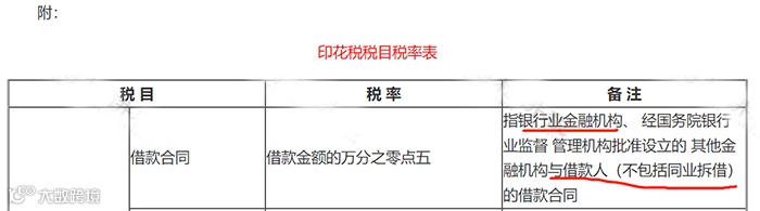 根据《中华人民共和国印花税法》附《印花税税目税率表》:“借款合同范围是指银行业金融机构、经国务院银行业监督管理机构批准设立的其他金融机构与借款人(不包括同业拆借)所签订的借款合同,按借款金额万分之零点五缴纳印花税。”
