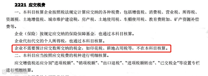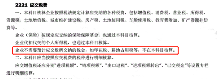 “企业不需要预计应交数所缴纳的税金,如印花税、耕地占用税等,不在“应交税费”科目核算。”