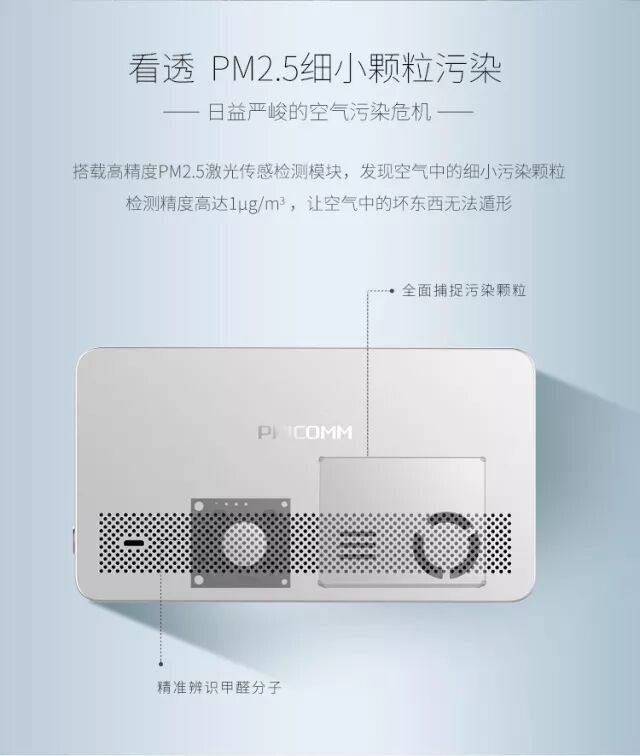 斐讯悟空M1空气管家是一款主打空气质量监测的产品,PM2.5是头号指标、令人欣喜的是,它加入了对于甲醛的高精度监测(0.01mg/m³),这点值得称赞!