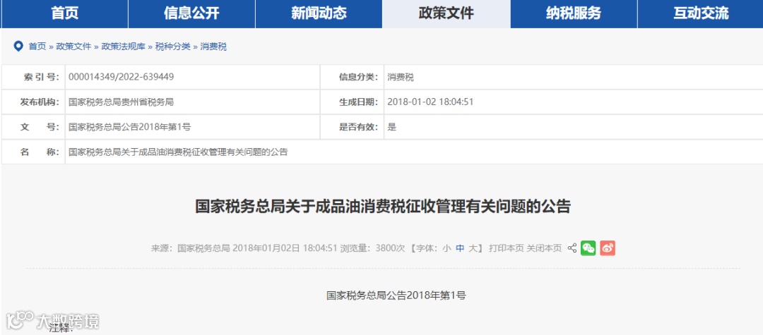 国家早在2018年就发布了《关于成品油消费税征收管理有关问题的公告》。