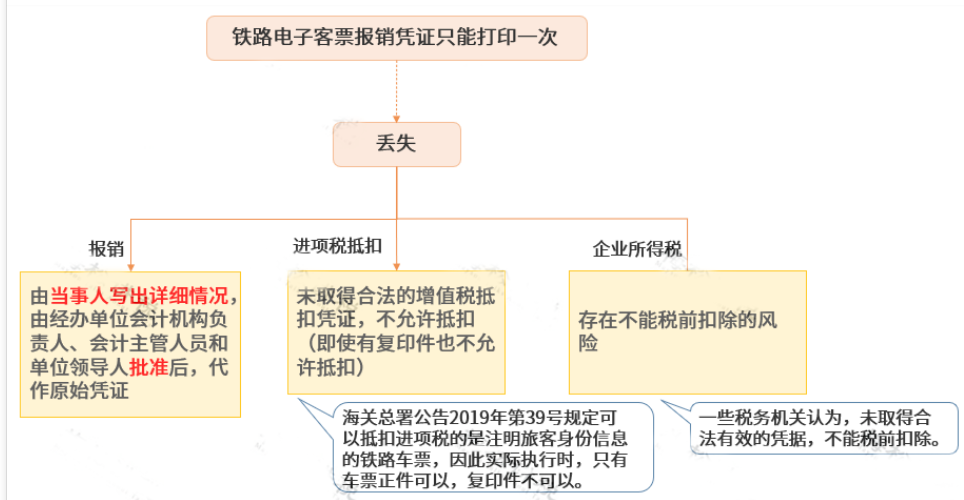 例如,铁路电子客票丢失后,企业所得税存在不能扣除的风险。