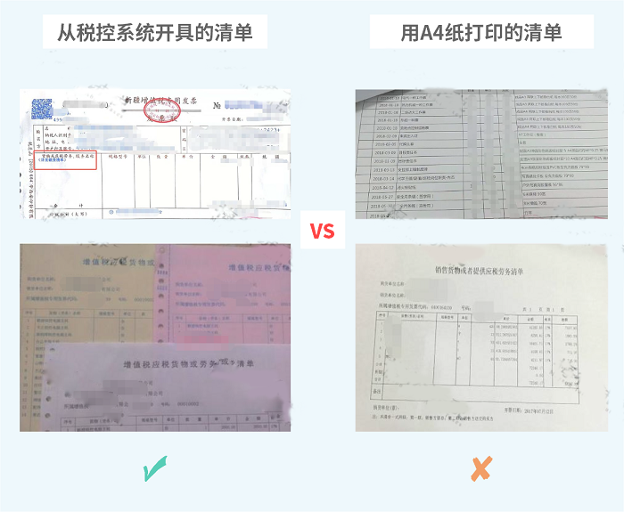 四、发票附带清单是自己用A4纸打印的,不能入账!退回!
