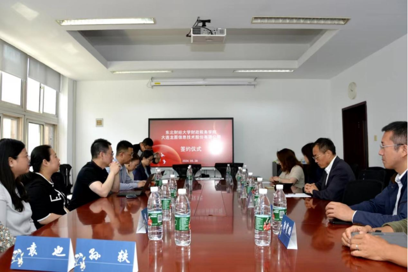 2024年5月28日,东北财经大学与大连龙图信息技术股份有限公司(以下简称“龙图信息”)的校企合作签约仪式在连成功举办。本次签约标志着未来双方在数字财税领域的深入合作,也同时推动校企一体联动及产学研深度发展。东北财经大学合作发展与校友工作处处长何方、东北财经大学财政税务学院院长谷成,以及龙图信息合伙人涂俭、慧税学苑总经理郭占彪等相关代表出席活动并见证仪式。