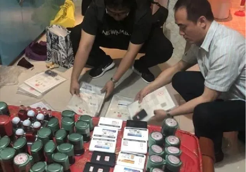缴获的部分空壳公司公章、发票章、营业执照等