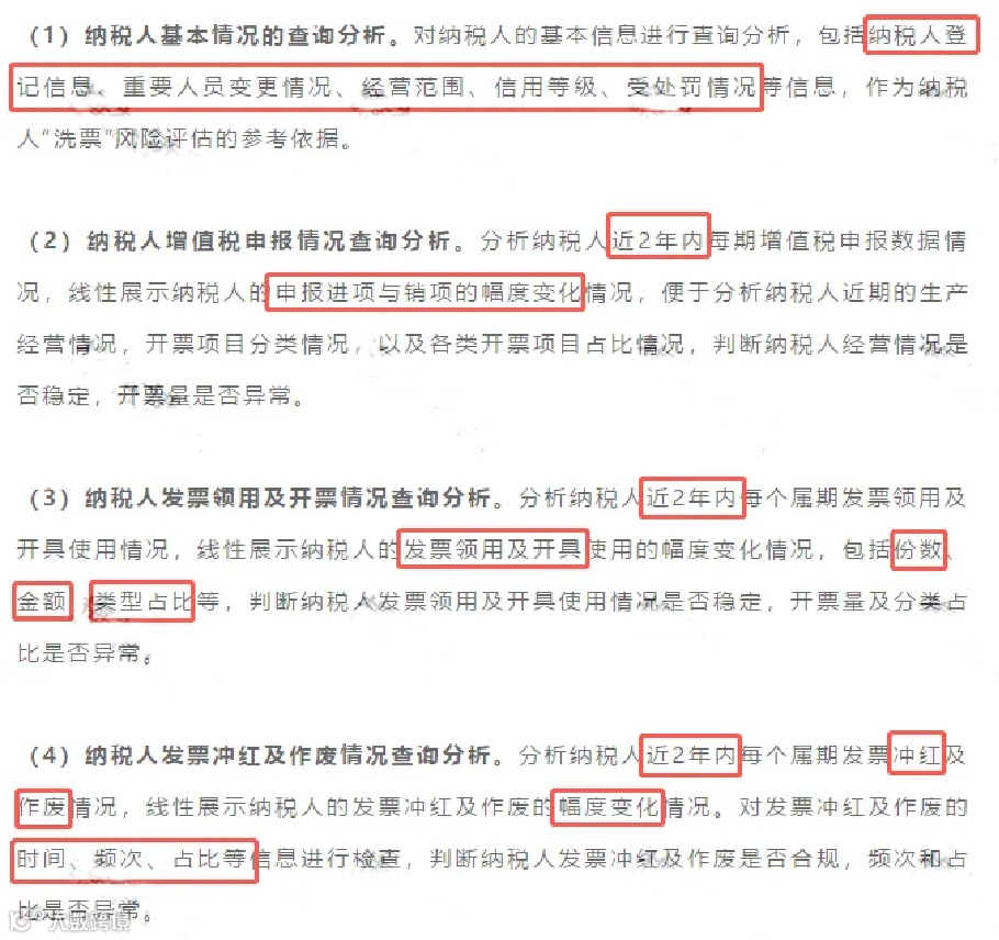 “反洗票”系统会分析纳税人近2年内每个属期进销项发票抵扣情况,包括进项发票与销项发票之间的品类相关性、构成比例、金额、税率等情况,并结合对上下游客户的基本风险评估,综合判断开票业务是否存在异常。