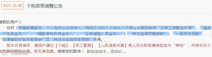 大家申报个税时需注意:个体户业主、个独投资人不得申报工资薪金!