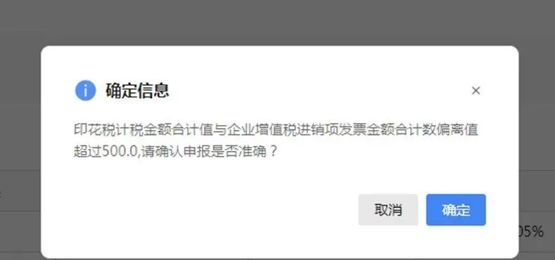 “印花税计税金额合计值与企业增值税进销项发票金额合计数偏离值超过500,请确认申报是否准确?”