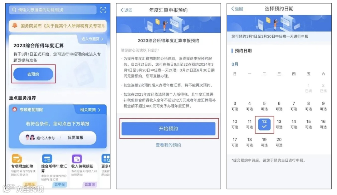 注意,今年个税汇算清缴预约时间截至3月20日,在此之前办理个税汇算清缴都需要预约才能办理,大家可以提前预约。