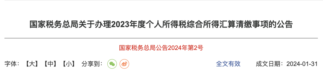 1月31日,国家税务总局发布2023年度个税汇算清缴的新公告。