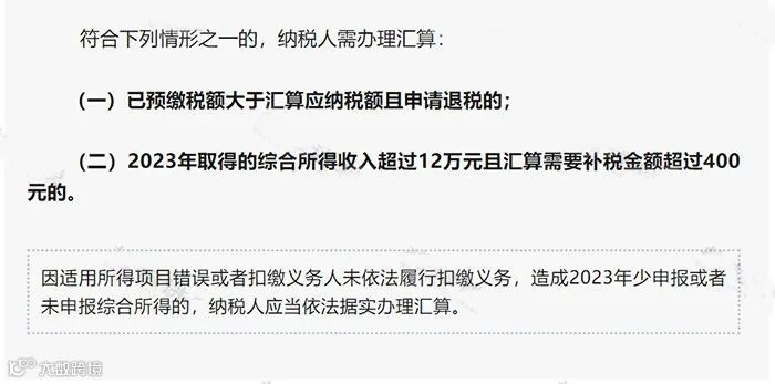 (2)2023年取得的综合所得收入超过12万元且汇算需要补税金额超过400元的。