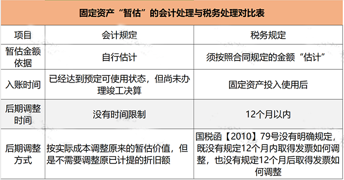 由于《国家税务总局关于贯彻落实企业所得税法若干税收问题的通知》(国税函[2010]79号)对于暂估计税基础固定资产的后期调整方式未给出明确规定,因此各地税务机关或税务人员按照各自不同理解和观点执行,存在很大的税收争议,企业需要特别注意该问题可能给企业带来的税务风险。