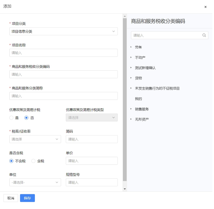答:蓝字发票开具时,只有选择已经维护的项目名称时才会正常带出税率。若要新增项目信息,具体操作如下: