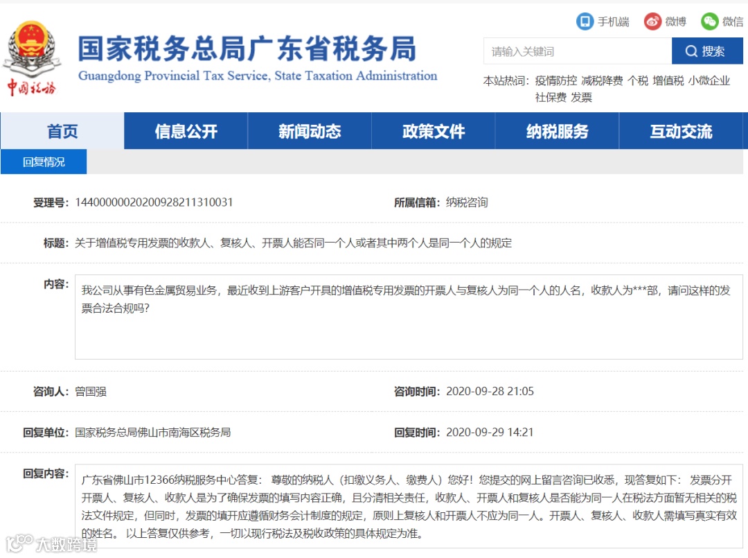 之前纸质票时代,广东省税务局也曾对这一问题进行过明确答复: