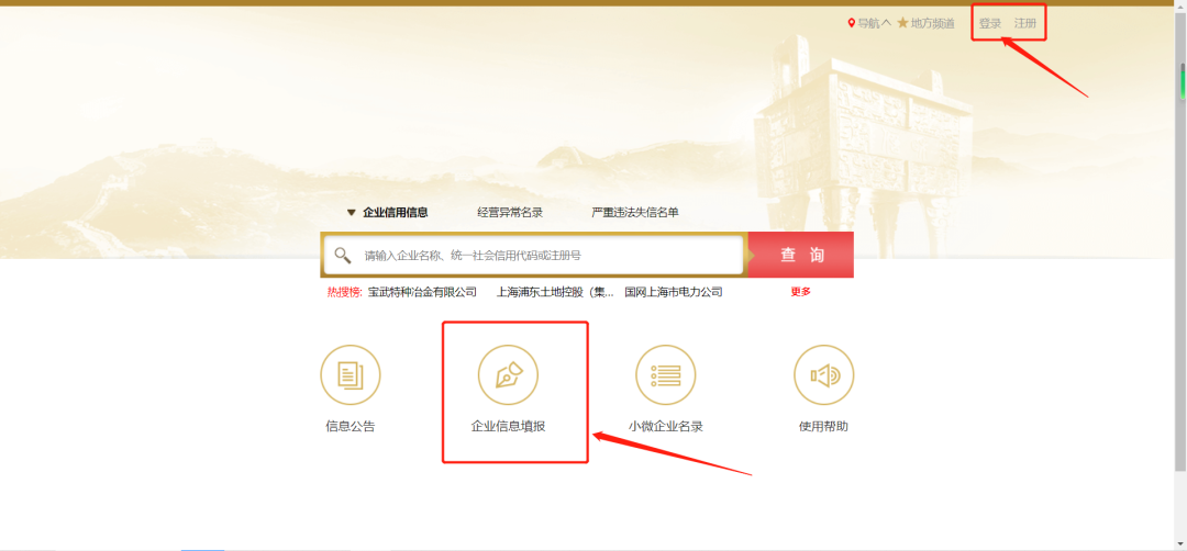 ①登录国家企业信用信息公示系统,点击【企业信息填报】
